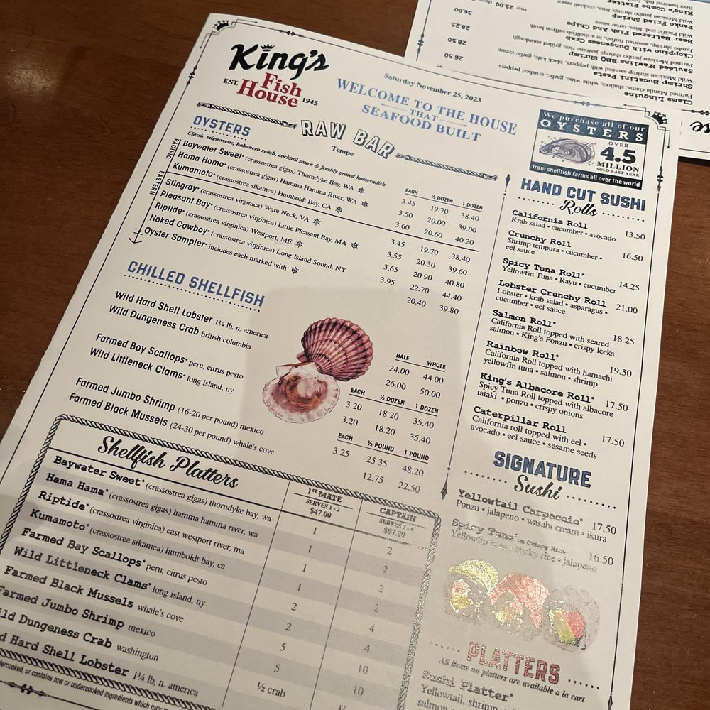 Welcome to King’s Fish House - Tempe, a premier seafood destination nestled in the vibrant Tempe Marketplace. This restaurant offers an inviting ambiance that balances casual comfort with a classy feel, perfect for families and groups alike. The extensive menu features tantalizing options, from fresh oysters to hearty fish & chips, ensuring something for everyone, including vegetarian and vegan dishes.